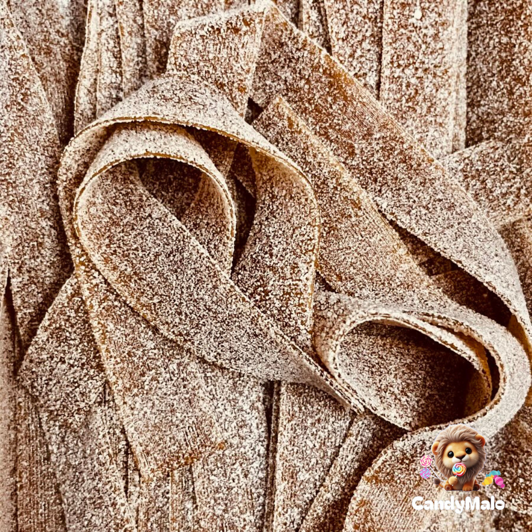 Sucre, farine de blé ( contient du gluten ), sirop de glucose, eau, amidon de Maïs, humectant : glycérine, acidifiants : acide citrique, acide malique, graisse végétales ( palme ), acidifiant : citrate de sodium, arômes, émulsifiant : E471, conservateur : sorbate de potassium, colorant E-150D.