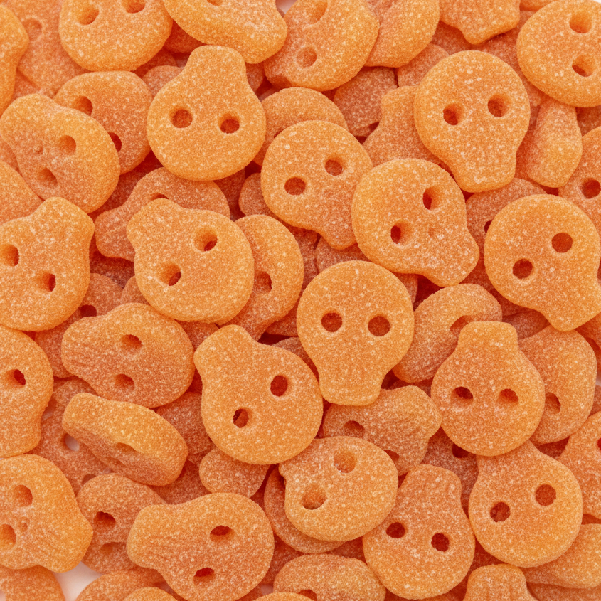 sucre, sirop de glucose, eau, amidon de pomme de terre modifié, 5 % de jus de fruits à base de concentré (pomme, poire, ananas, pêche), correcteurs d'acidité (E270, E296, E330, E350), arômes naturels, colorant naturel (oléorésine de paprika)