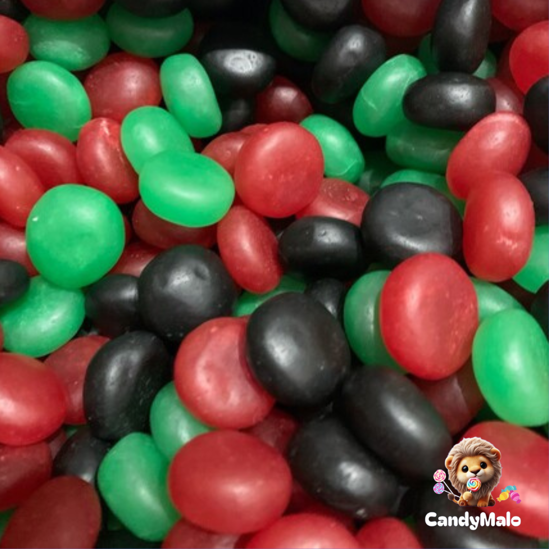 Sucre, sirop de glucose, amidon, Gélifiant : E440, gélatine, Acidifiant: E330, Correcteur d'acidité : E331, fécule, arômes, Colorants : E104, E110, E122, E124, E129, E131, E132, E133, E151, E153, huile végétale, Agent d'enrobage : cire de carnauba.