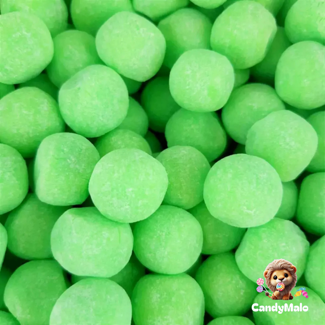 Sucre, sirop de glucose, graisse végétale totalement hydrogénée de coprah, dextrose, humectant : sorbitols, stabilisant : gomme arabique, maltodextrine, acidifiants : acide citrique, acide malique, amidon, jus concentré de pomme, arôme naturel, correcteur d'acidité : malates de sodium, émulsifiants : mono et diglycérides d'acides gras, concentré de spiruline et carthame.