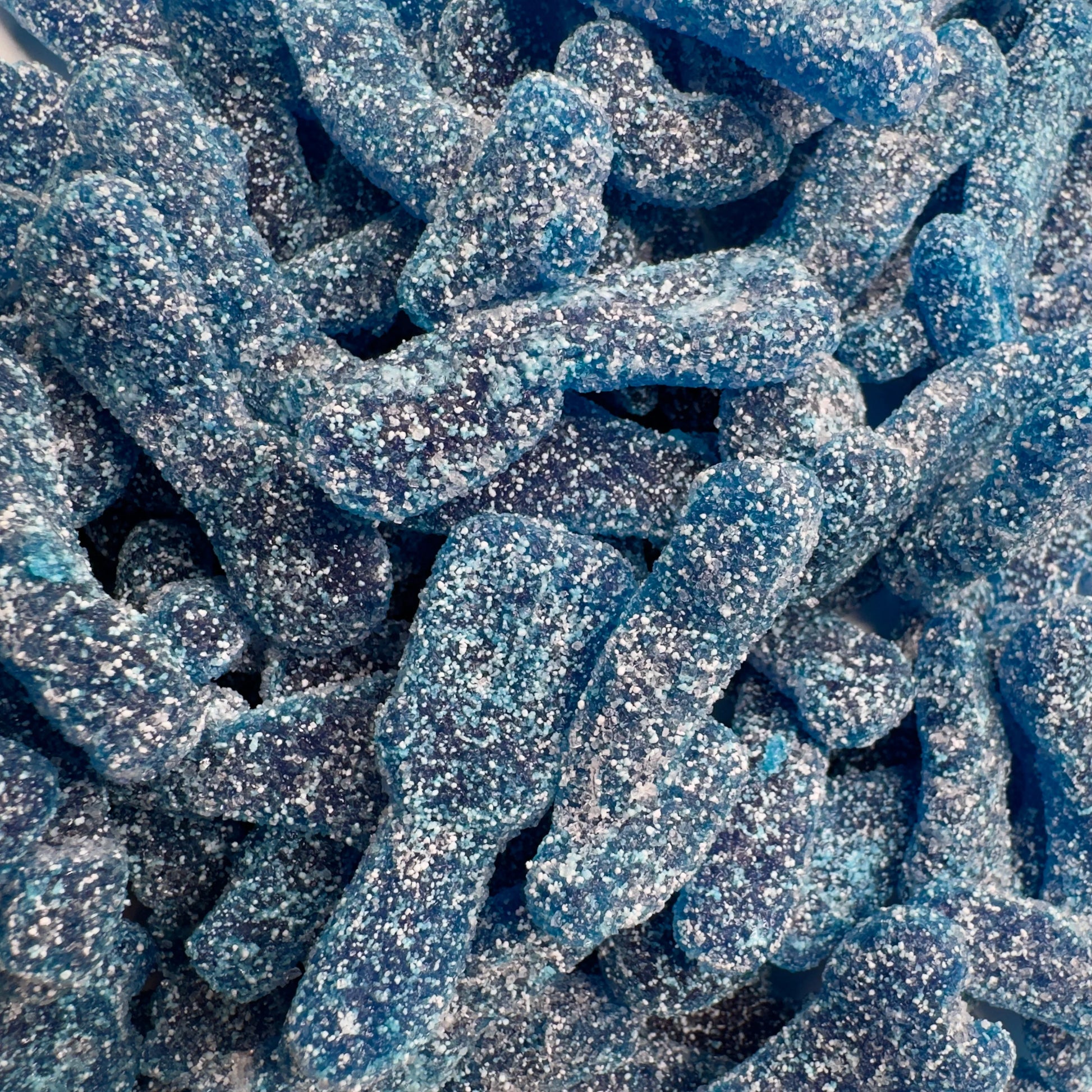 Sucre, sirop de glucose, gélatine, eau, régulateur d'acidité (E350), acidifiants (E296), arômes, colorants : E129, E133.